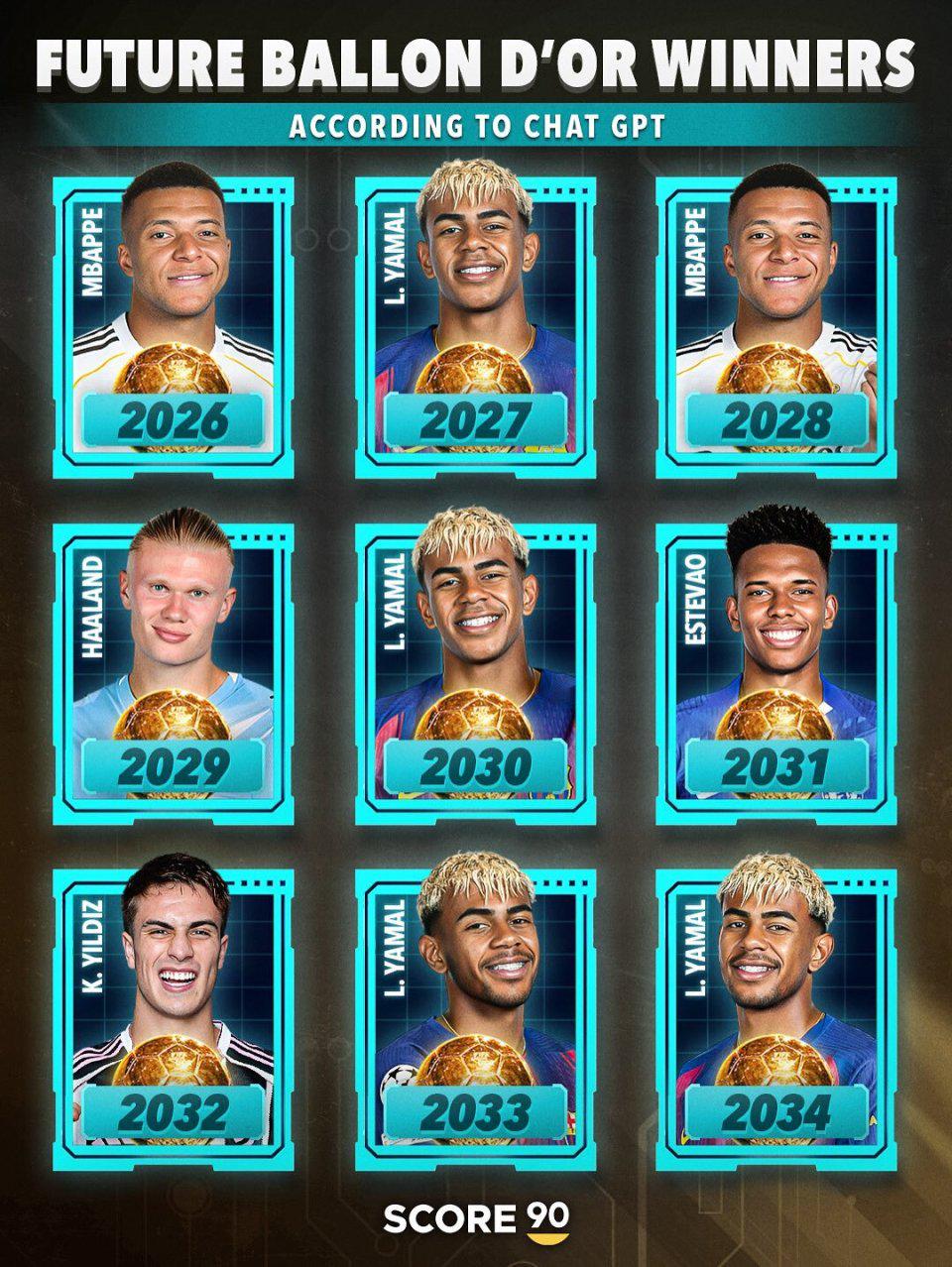 未来9年金球奖预测:姆巴佩明年获奖!亚马尔4次夺魁,2人意外